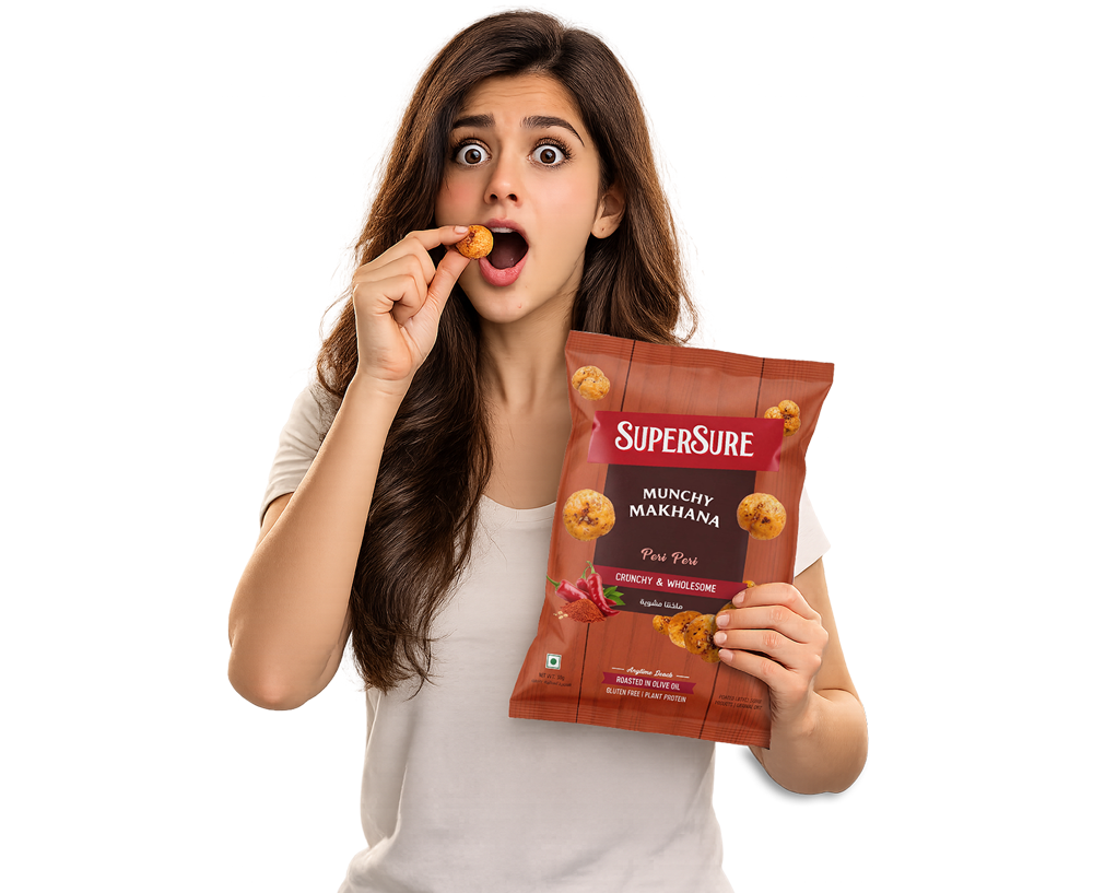 Supersure Munchy Makhana is roasted, not fried, making it a healthier snack choice. Roasting helps retain nutrients while delivering a satisfying crunch and bold flavors.